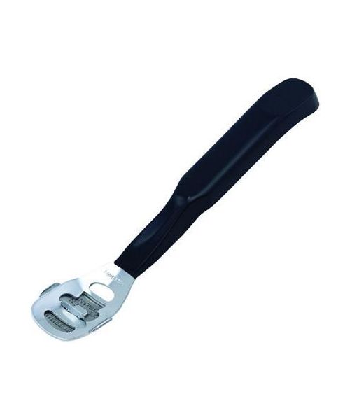 Although there are a variety of callus shavers to choose from, the same basic design is used for all of them. A long handle is topped with a razor blade that is held on top of a pierced piece of metal, and most of them are made from stainless steel which prevents the tool from rusting. Tweezerman is a trusted quality brand that makes an excellent callus shaver.